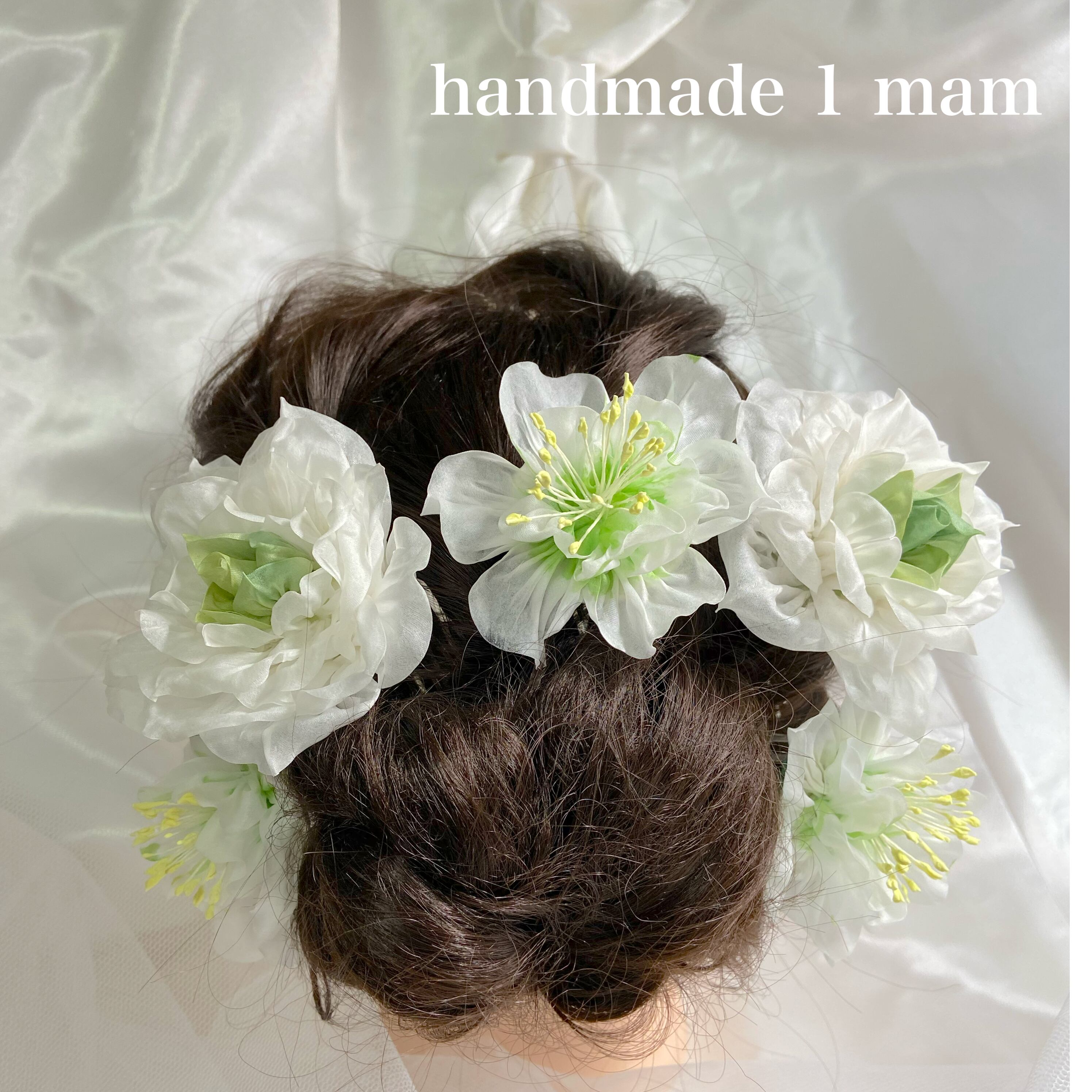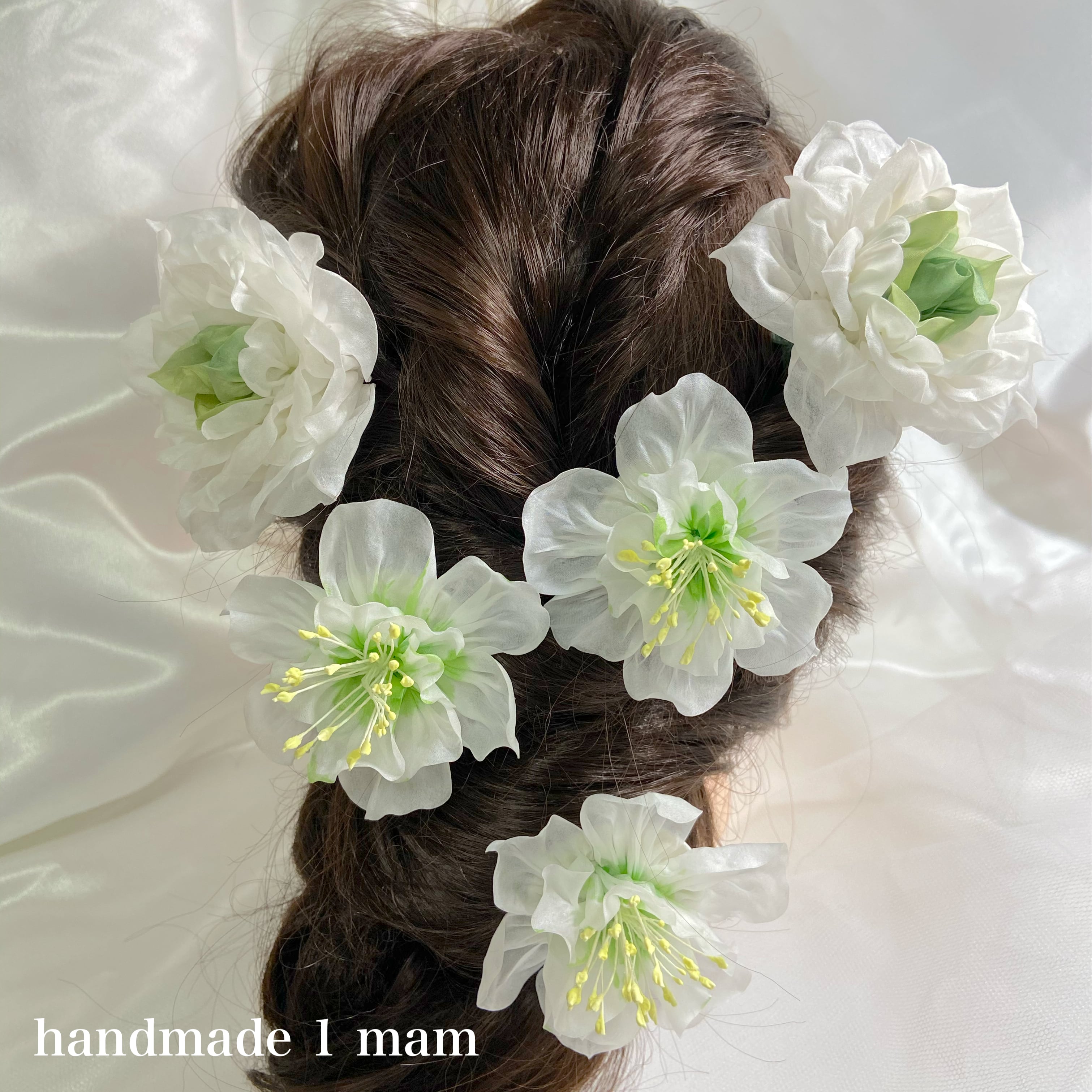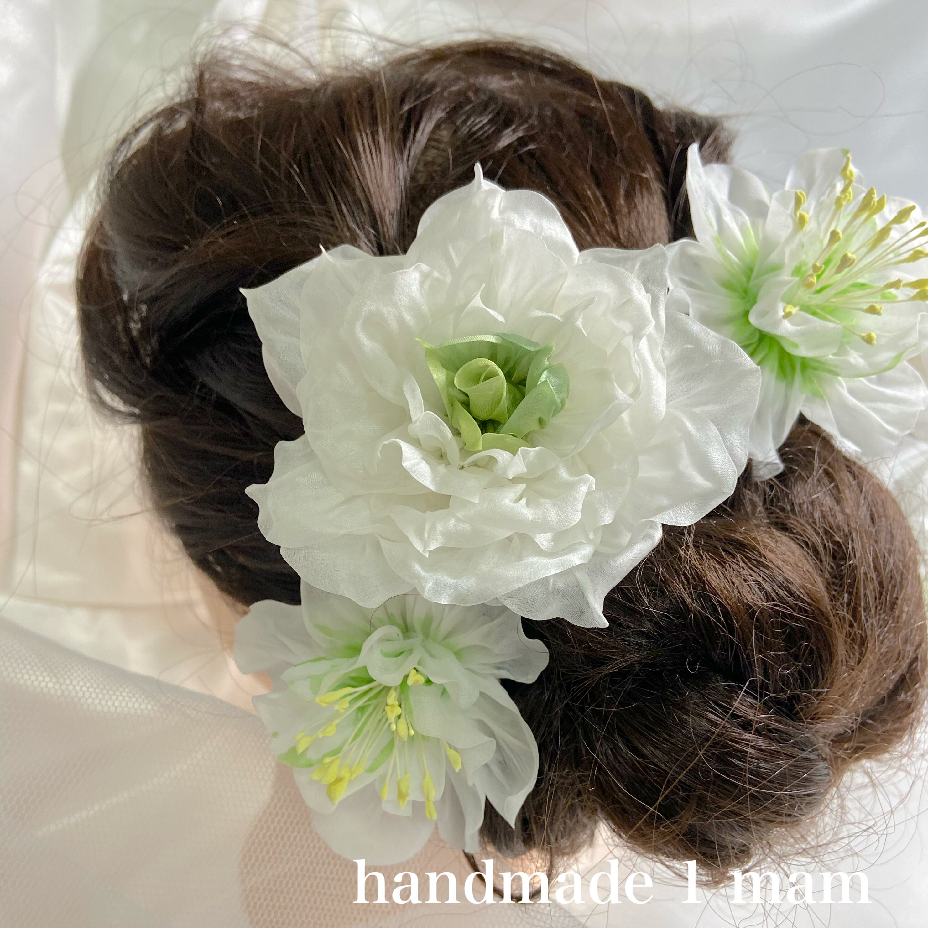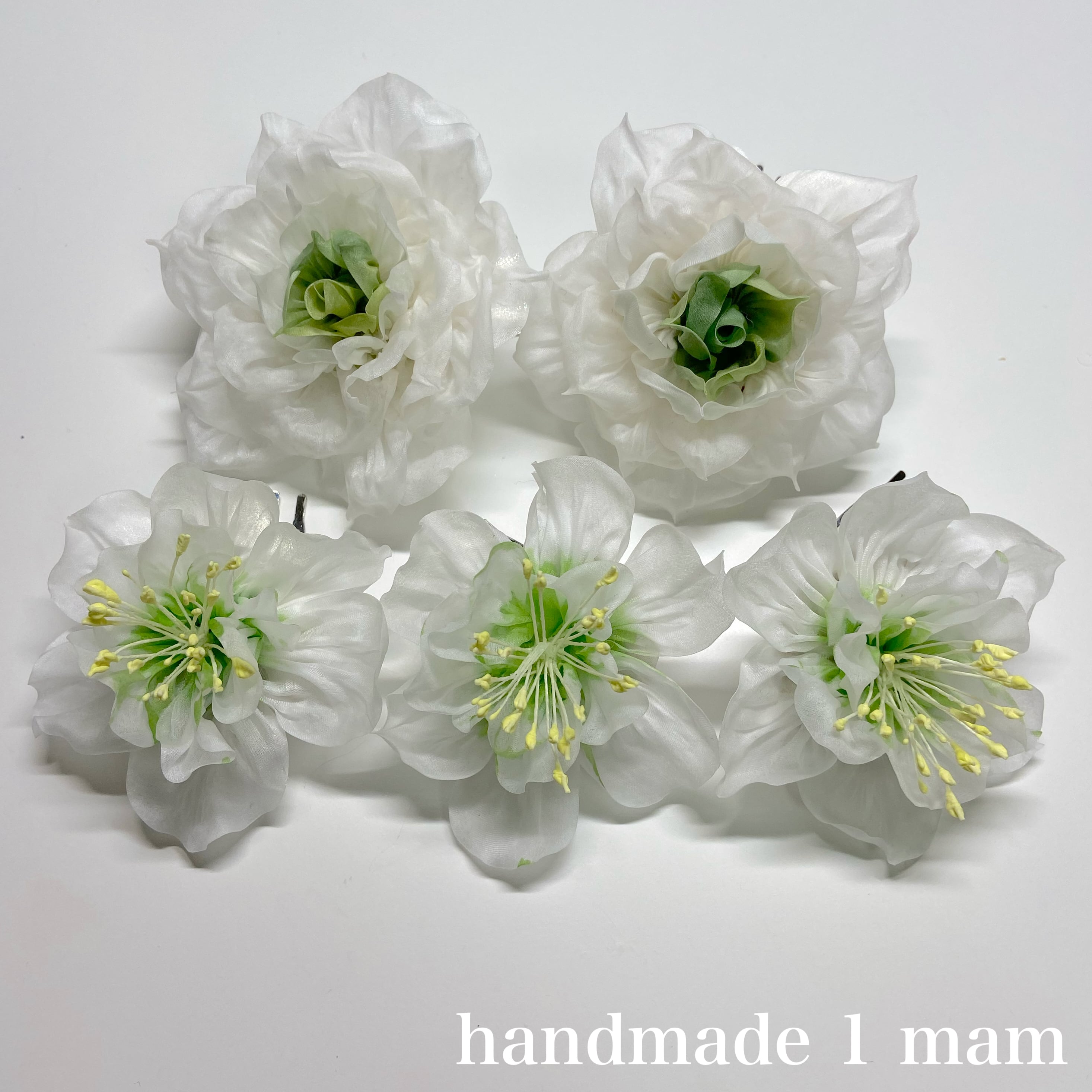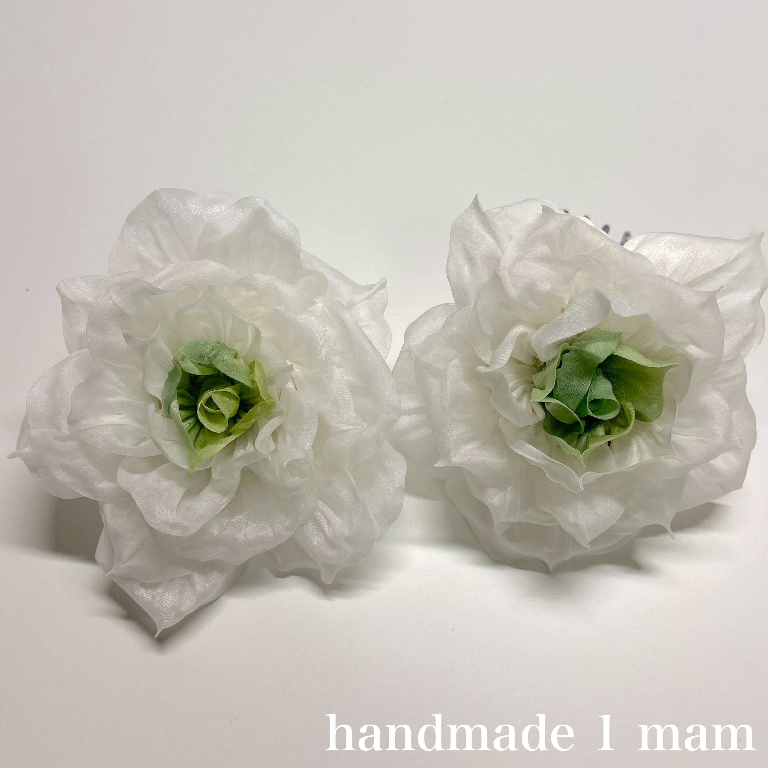 正絹で白いバラとクリスマスローズ、